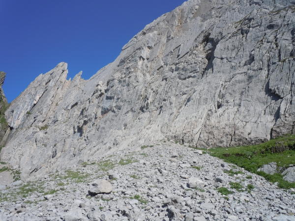 Gut mit Bergschuhen zu klettern, da technisch einfach. Gemäss Kletterführer Alpstein höchstens 2b. (Ich persönlich zähle beim Alpstein jedoch immer noch einen Grad dazu.)