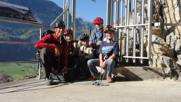 Da ich die Kinder am Seil führte, verzichtete ich auf Klettersteigsets. Die Kinder haben aber einen Bandschlinge mit Karabiner mitgeführt und eingehängt (Übung macht die Meister).