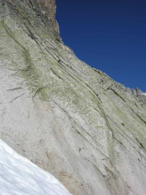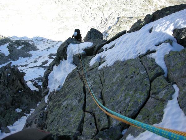 Bei der letzten SL lag ein bisschen mehr Schnee (Schatten). Die zur Verfügung stehende Fels-Fläche war somit reduziert und die Schwierigkeit hat ein wenig zugenommen.