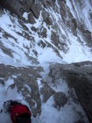 Die Bedingungen sind nicht schlecht, die Ausstiegslängen sind aber sehr anspruchsvoll und erfordern gute Mixed-Fähigkeiten und Kühnheit. Bei stärkerer Vereisung geht's dort deutlich einfacher voran.