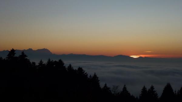 Es herrschte bestes Bike-Wetter. Es war angenehm warm und das meiste der Strecke war trocken. Lediglich in der Abfahrt von Möggers nach Scheffau gab es eine kurze, sehr nasse Wegpassage. Teile der Strecke sind richtige "Pump"-Anstiege und fordern einiges ab. Es ist aber alles fahrbar, bis hinauf zum Gipfel.