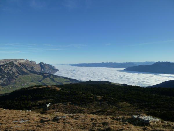 Unten grau und oben blau. Temperaturen bei der Rückfahrt: oben 16°C, im Tal 5°C.