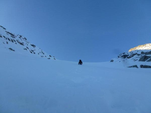 für diese Jahreszeit top.Je nach Schneeverfrachtung bis 30cm Pulver. Alles feinster Pulver, oder windgepresst. Die Füsse bleiben trocken! Steigeisen und Pickel für Route 2 notwendig.