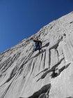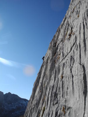 Super Felsqualität:griffig,mit Wasserrillen und schön strukturiert.Nur die 6b arschglatte Reibungkletterei.