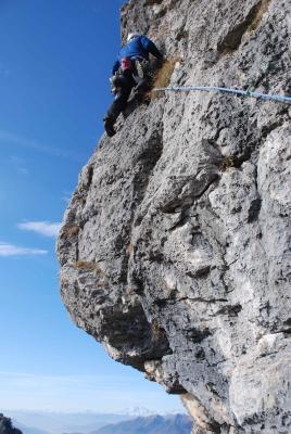 Herrlicher Herbsttag mit Fernsicht auf die fernen walliser Alpen und Dunst gegen die Po-Ebene. Fels trocken und warm.