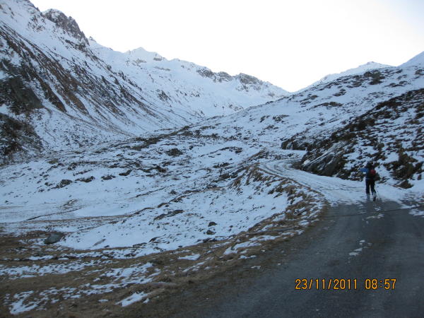 Beim Start im Witenwasserental bei Sunnsbiel auf 2050m liegen noch einzelne apere Stellen. Ab 2100m liegt für die ganze Tour eine geschlossene Schneedecke.