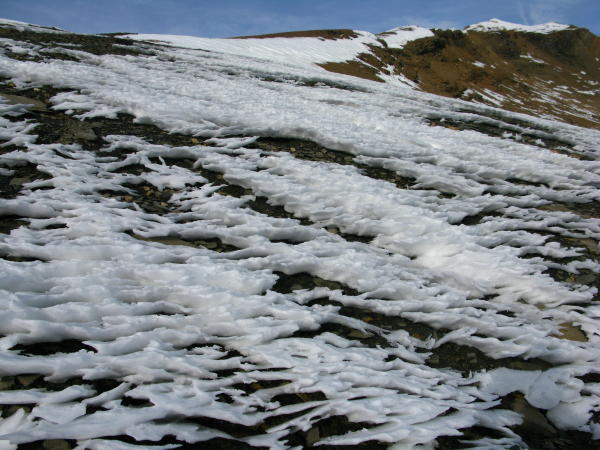 sehr trocken im lötschental! ab kummenalp ca. -3 grad und schon einiges an eis,ab obers färda schnee, zum teil tragend, zum teil mühsames einbrechen bis in die darunterliegenden felslöcher. unterhalb ferdenpass noch apere hänge, danach schnee bis zum gipfel. am "skigipfel" umgedreht mangels steigeisen.