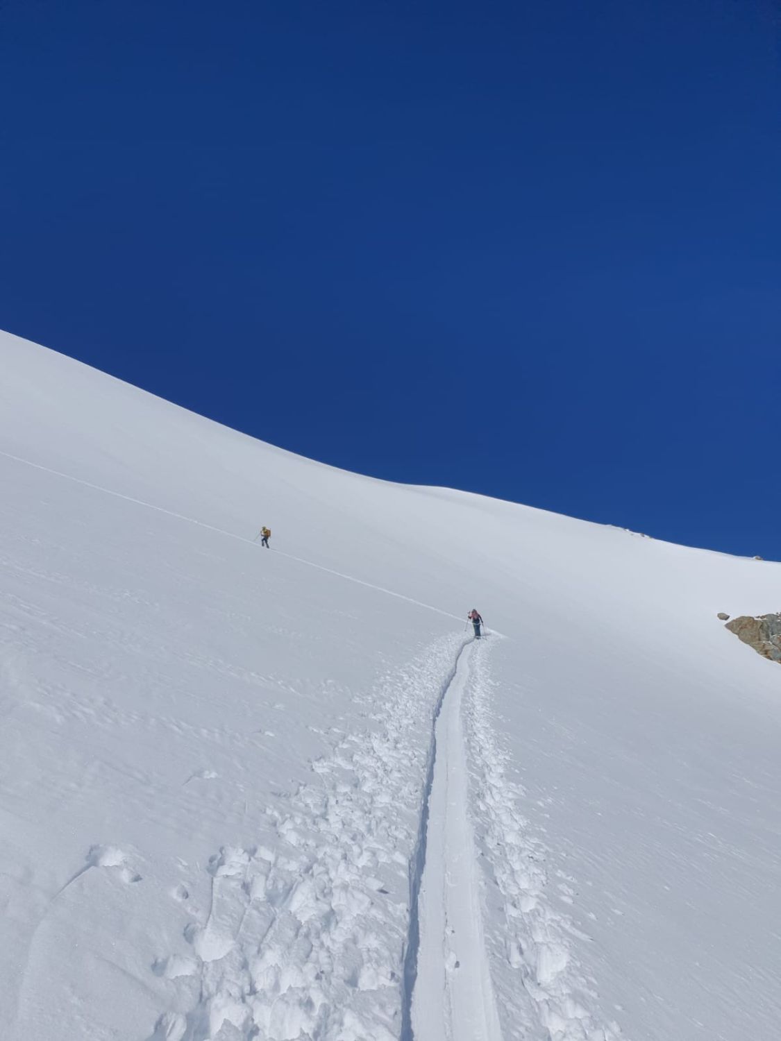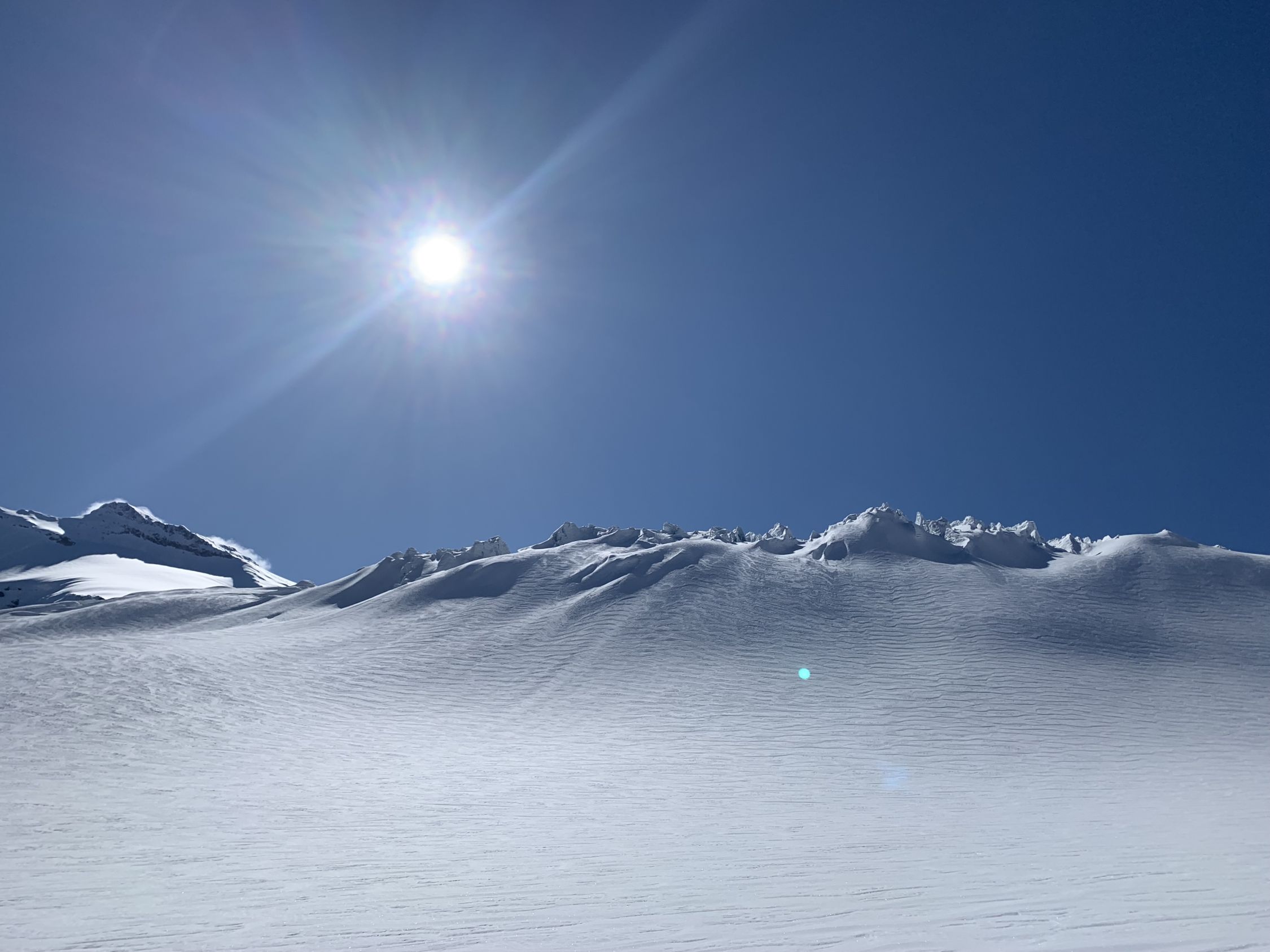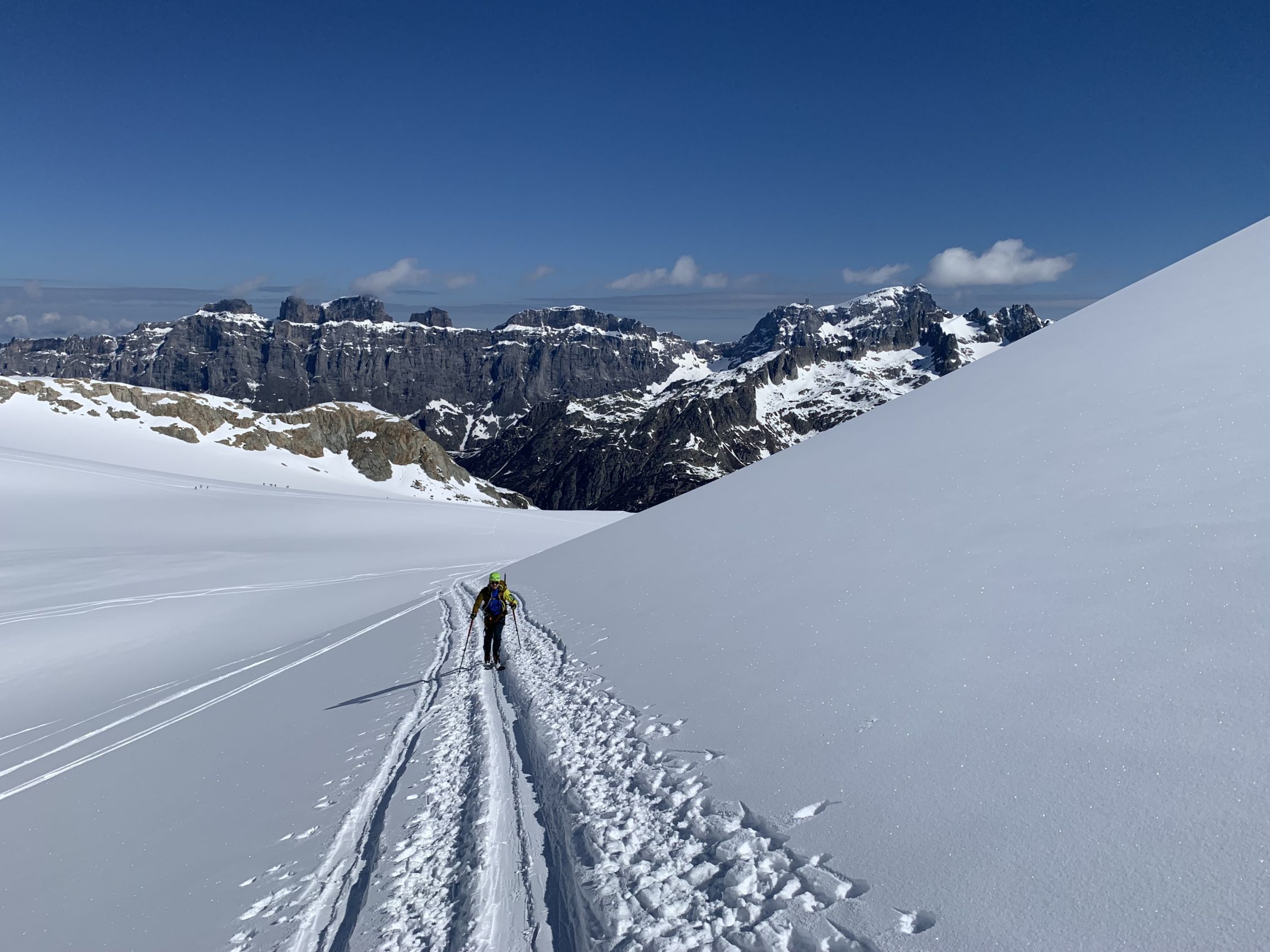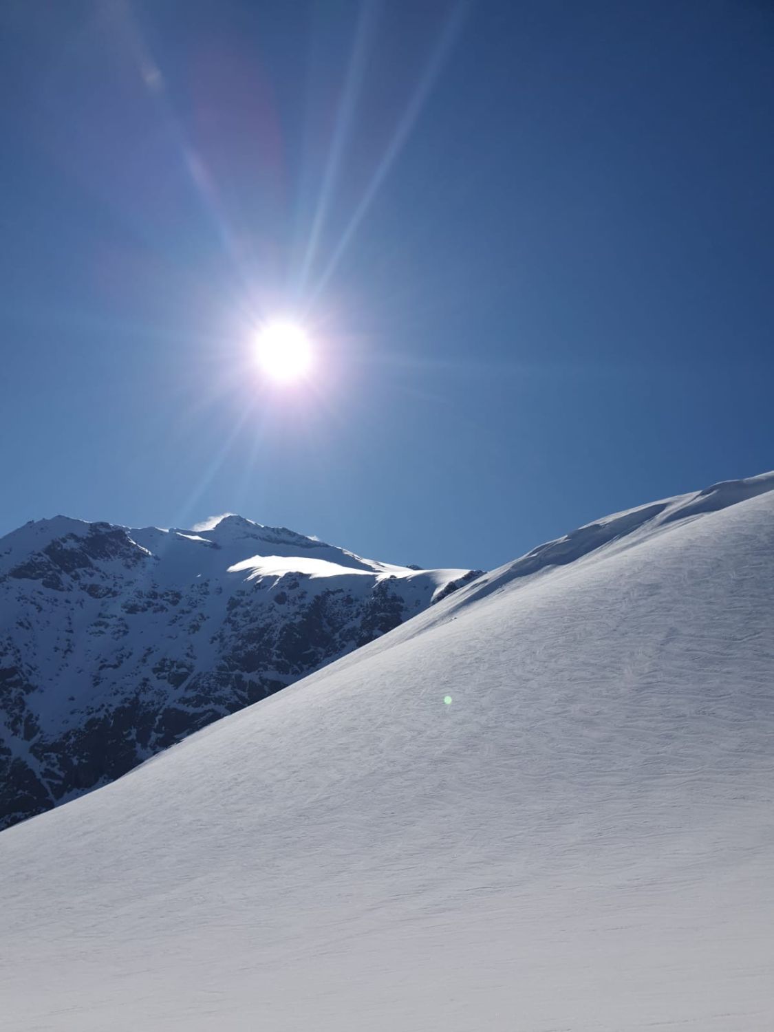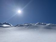Start heute beim Parkplatz Umpol. Angenehme Spur, nicht pickelhart. Steilstufe heute mit Skis und Harsteisen gemacht, ging, aber zu Fuss, evtl. mit Steigeisen wäre wahrscheinlich einfacher. Wetter am Morgen traumhaft, mit zunehmender Höhe Neuschnee von 20-30 cm. Viele Tourengänger auf dem Sustenhorn, Mittler Tierberg und Vorder Tierberg wurden auch gemacht. Abfahrt via Nordflanke (Nordostwand wurde auch befahren). Nordflanke schon ziemlich verfahren jetzt.