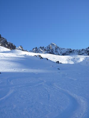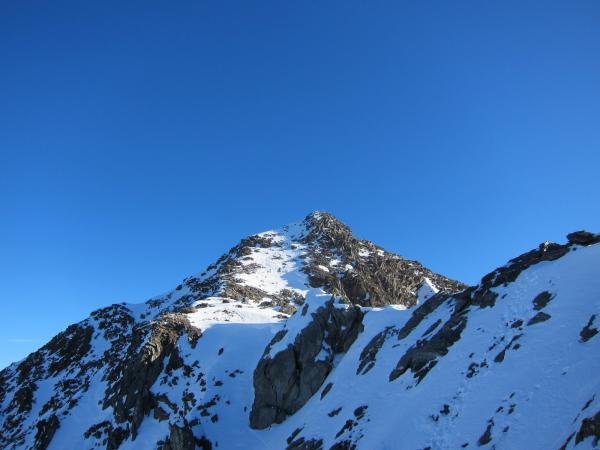 Spuranlage vorhanden und gut. Das Couloir hoch auf den Westgrat ist ohne Steigeisen machbar.