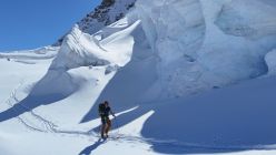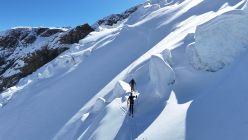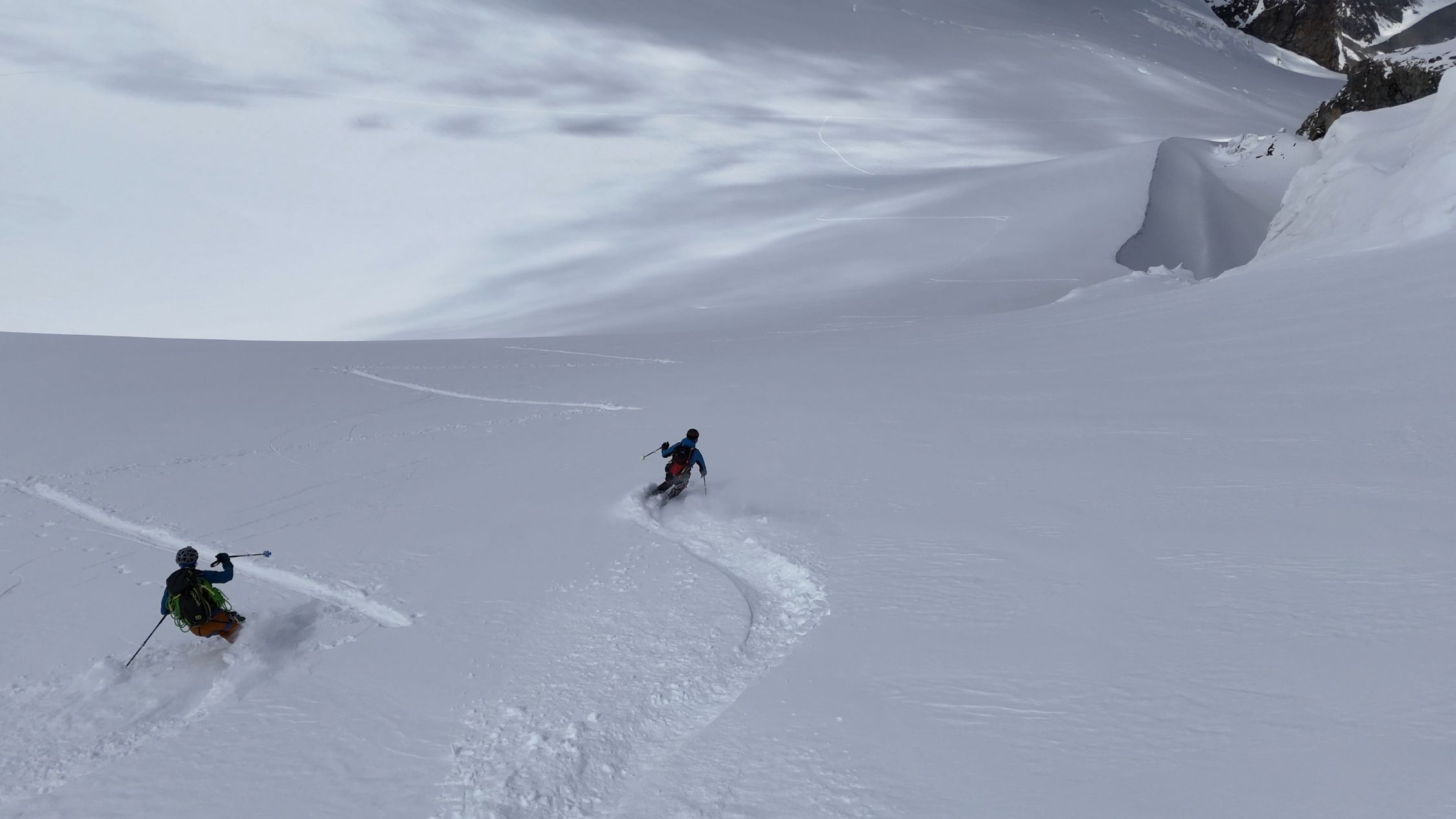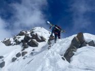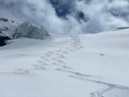 Start um 05:45 von Morteratsch aus. Zu Fuß bis Anfang Gletscherzunge. Dann durch den Buuch mit bester Aufstiegspur bis Abzweigung Piz Bernina auf 3350m. Danke den zwei Vorarlberger fürs Spuren bis dorthin - sie gingen auf den Piz Bernina - an diesem Samstag waren nur wir (auch Vorarlberger) und sie hier unterwegs - genial. Bis 3900m durften wir dann Spuren, bei bestem Pulverschnee. Noch über den Grat hoch (etwas heickel) bis zum Gipfel - 13:00. Abfahrt über die Westflanke bei genialen 30cm Neuschnee bis ca. 2900m. Dann noch mit etwas tiefen schwerem Schnee bis Ende Gletscherzunge.