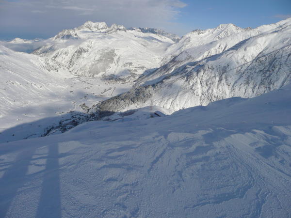 Oben wird der Wind weiter arbeiten, Unten bereits leichte Krustenbildung durch die milden Temperaturen