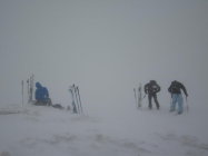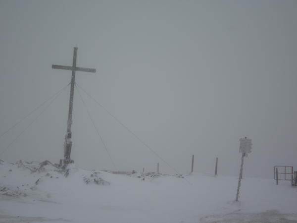 Schlechte Sicht. Schöner Neuschnee im oberen Bereich (Ca. 15-20cm). Unten nasser, klebriger Neuschnee.