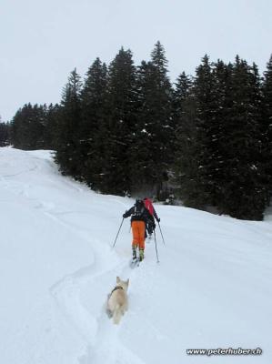 Bewölkt, zeitweise auch sonnige Abschnitte. Sehr warm. Der Schnee war recht feucht. Auf der ganzen Strecke hat es genug Schnee. Auf der Abfahrt war der Schnee erstaunlich gut zu fahren.