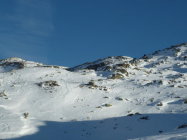Im oberen Teil nicht genügend Schnee (zum abfahren). Es sieht abgeblasen aus.