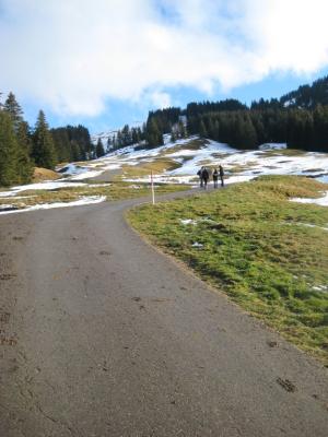 Fahrweg zur Grüntenhütte, eigentlich Rodelstrecke bis auf wenige Ausnahmen aper.