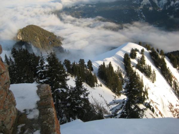 Solange kein Neuschnee kommt mit "Joggingausrüstung" möglich. Die Schneemenge im Gipfelbereich (Roßkopf) würde evtl. reichen lohnt aber nicht die Bretter hochzuschleppen.
