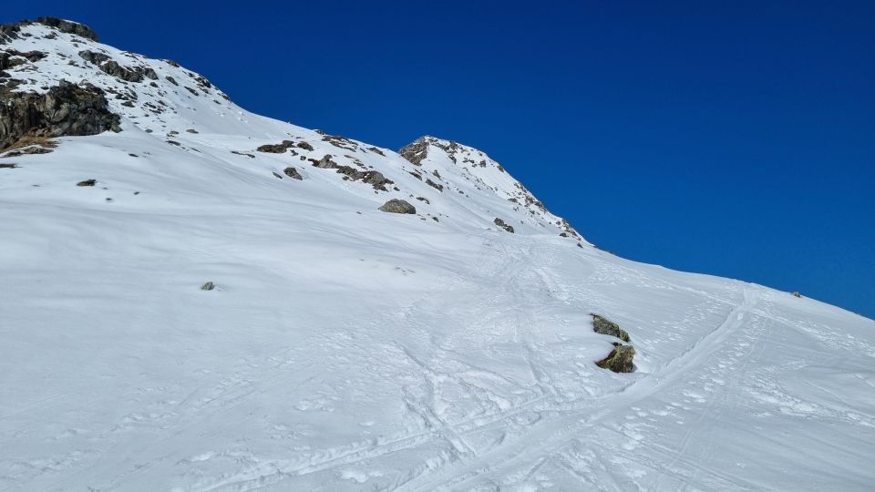 Vom Oberalppass mit ein wenig gutem Willen noch durchgehend auf Schnee machbar, abgesehen vom Übergang zur Südseite. Oben schön aufgesulzter Schnee bei der Abfahrt kurz vor dem Oberalppass bleischwerer Schnee (11:30). Der Schnee schmilzt aber schnell. Stellen, die beim Aufstieg noch gut machbar waren, waren bei der Abfahrt schon fast weggeschmolzen.