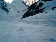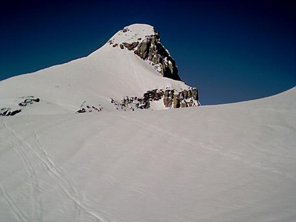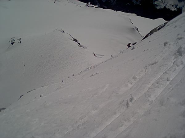 Das traumhafte Wetter hat zahlreiche Tourengeher angelockt, ca. 25 Personen waren unterwegs auf den Gross Ruchen. Von Brunni bis in den untersten Teil der Ruch Chälen war die Schneedecke weich und durchfeuchtet und die Oberläche nicht gefroren. Ab ca. 2400 m erschwerten zahlreiche Lawinenzüge den Aufstieg mit Schi und die Schneeoberfläche war pickelhart gefroren aber nicht immer tragfähig. Insbesondere die glatten, gekrümmten Gleitflächen der Lawinen waren mühsam, denn die Harscheisen konnten nicht richtig greifen. Steigeisen waren in diesem Abschnitt sehr nützlich. Auf dem Ruchenfirn ist grösstenteils über den zuletzt gefallenen, mittlerweilen etwas schweren Schnee eine Sulzkruste ausgebilet, aber nicht immer, was man vor allem in der Abfahrt zu spühren bekommt.