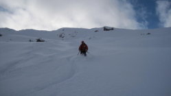 Die Aufstiegrinne am Schluss ging aber ebenfalls keine Unterlage, nur Neuschneefluffi.