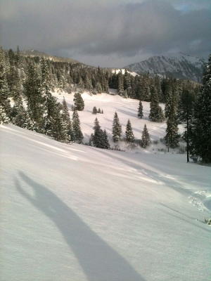 Seidenfeiner Pulverschnee von oben bis unten. Kein Steinkontakt. Auf dem Gipfel um ca. 10:30 Uhr winterlich kalte, windige Verhältnisse und einsetzender Schneefall. Übergang zum Fürstein verblasen.