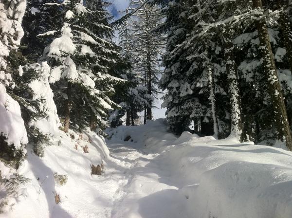 Wenn weiterhin kein oder nur wenig Wind herrscht, werden sich auch die Schneemengen von dieser Nacht gut mit der gestrigen Schicht verbinden, da sich ja auch keinerlei Rauhreif-Zwischenschicht bilden konnte.