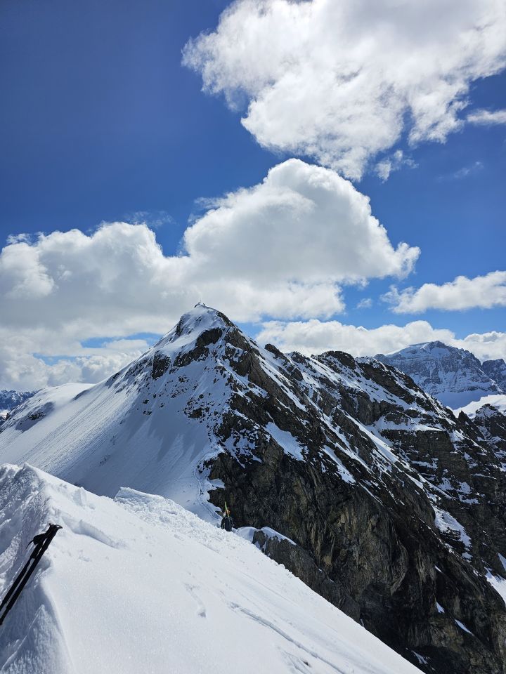 Am Gipfelgrat gute Verhältnisse für alle, die Steigeisen und Pickel dabei hatten. Aufgrund der vielen Leute am heutigen Prachtstag brauchte es aber wohl Geduld ...
