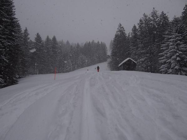 Derzeit ist alles bis auf ein paar wenige Bachläufe gut eingeschneit. Wunderbarer Pulverschnee, keine Steinkontakte zu verzeichnen. Perfekte Nachmittagstour, auch wenn das Wetter nicht mehr ganz so toll war.
