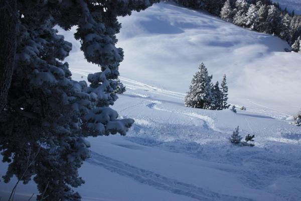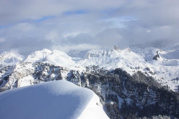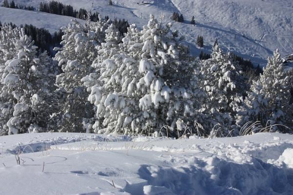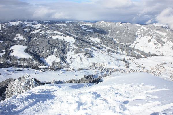 Zu Beginn der Tour stark bewölkt mit Schneefall. Später sonnig. Im Anschluss Nebel und Schneefall.