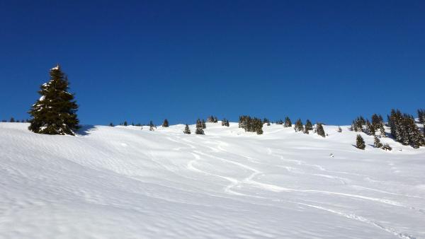 Laucherenstöckli (1753m): Von Illgau der Abfahrtspiste entlang bis Gipfel