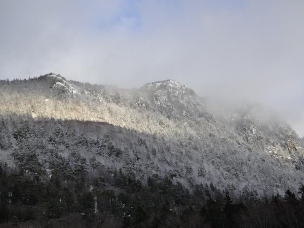 Im Abstieg rutschige Bedingungen. Nassschnee auf Laub, dafür zunehmende Wetterbesserung.
