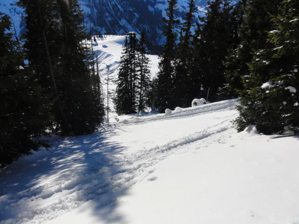 Abfahrt in südlicher Richtung bis Waldweg Pt. 1358, herliche Pulverauflage unten etwas ruppig aber immer noch top.