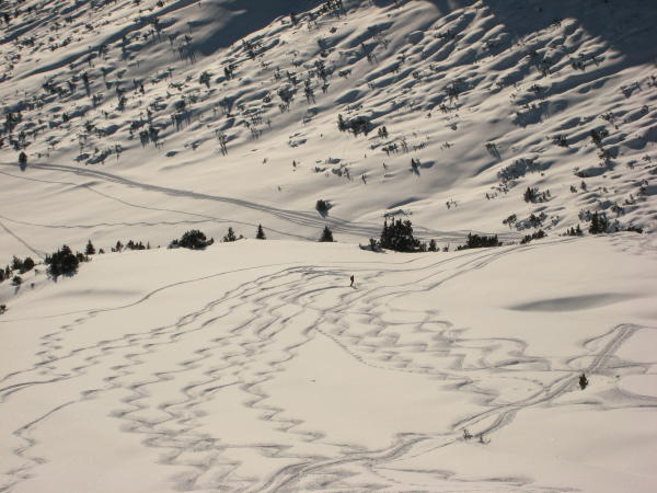 Ca. 15 cm leichter Pulverschnee auf fester Unterlage. Herrliche Verhältnisse.