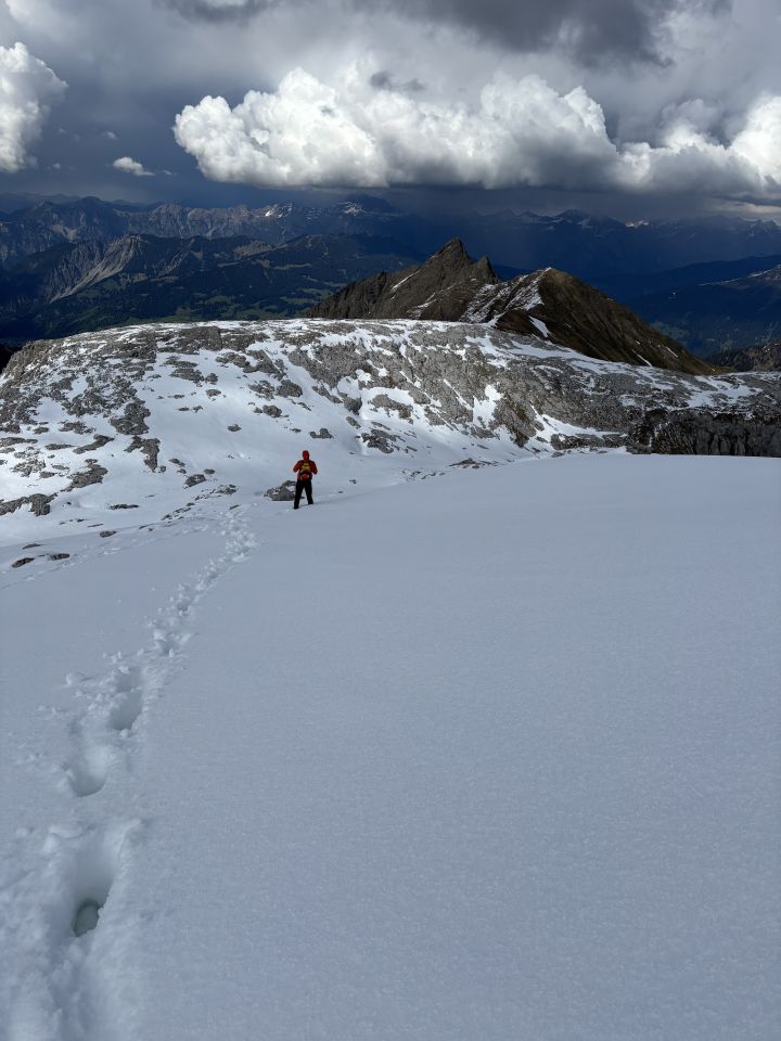 Im Abstieg dann teils noch tiefe Schneefelder bis ca. 2400müm. Daher gutes Schuhwerk empfohlen.