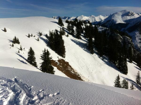Vorsicht bei Triebschneeverfrachtungen und an Nordhängen. Tendenziell über 2000m mehr Vorsicht walten lassen. Einige Rutsche bis auf Grasnarbe gesehen.