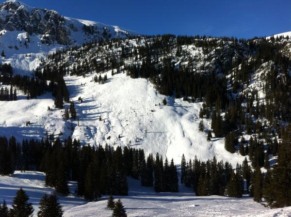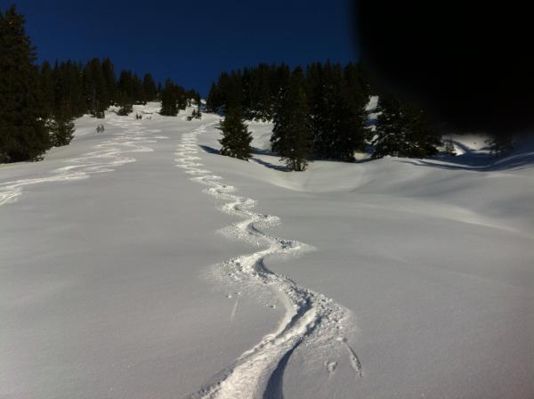 10 bis 15 cm Pulfer auf harter Unterlage. Genug Schnee vorhanden. Nicht zu spät starten. Ab 14:00 wird der Schnee immer schwerer.