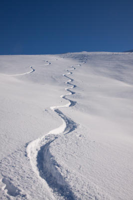 Abfahrt nach Laseberg, dann via Mattebärgli zurück zur Aufstiegsspur. Einfach nur herrlich.