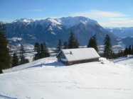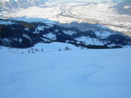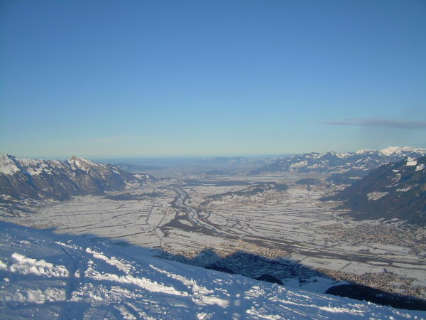 Das Rheintal feiert weiße Weihnachten, es hat dort Schnee bis ins Tal hinunter. Weiter unten hat es in die Schneedecke hineingeregnet, ab ca. 1400 m dann Pulver auf einer Harschplatte.
