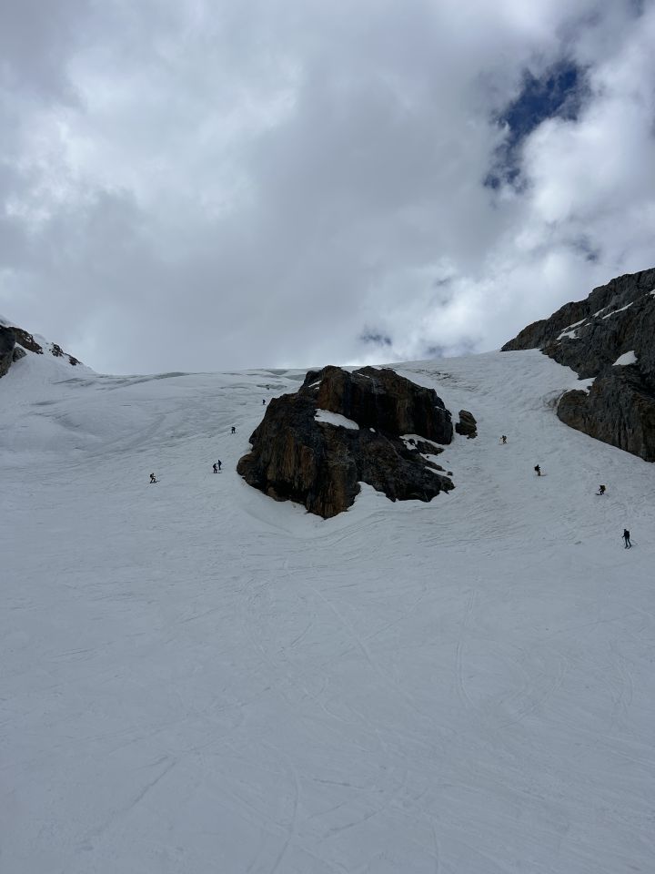 Unten wird der Schee rasch weniger, Steilpassage zu Fuss ohne Steigeisen gut zu machen, aber der Schnee wird auch hier rasch weniger