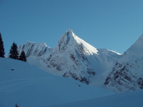 Schöne Frühwinterverhältnisse, im unteren Teil gerade genug Schnee, im oberen Bereich schöner Pulver auf harter Unterlage, keine Steine. Momentan empfiehlt sich eine Gipfelbesteigung nur über die andere Route 233b da der Fussaufstieg stark verblasen und vereist ist.