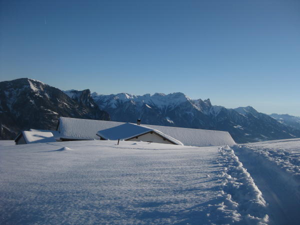 In den Schatthängen feiner Pulver, an der Sonne nass (v.a. Chammhüttli - Mädems Hintersäss).