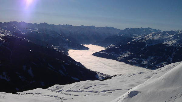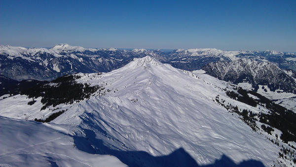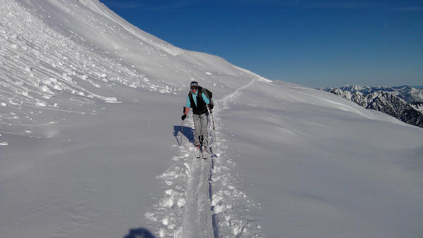 Recht gute Bedingungen, Schnee ausreichend vorhanden, allerdings in den stark besonnten Hängen schon aufgeweicht.