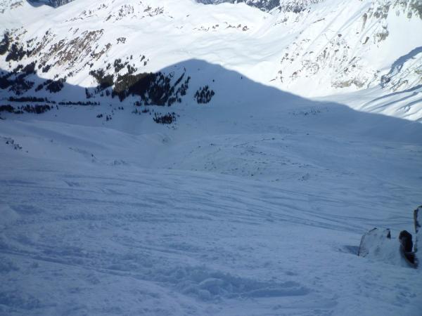 Windgepresster Pulver vom Gipfel bis Parkplatz.