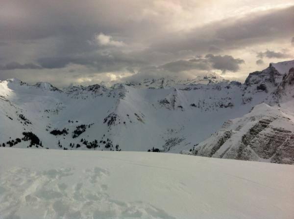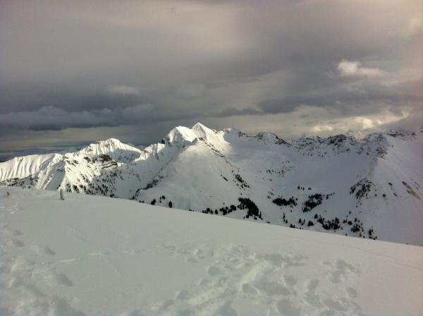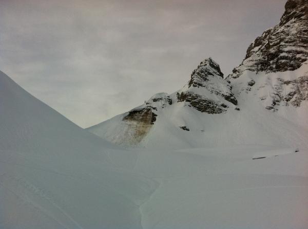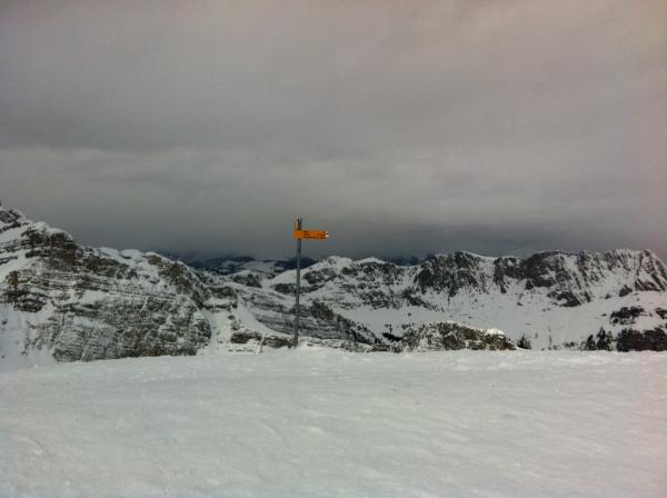 Meist harte Spur, Gipfelhang zum Teil eisig. Bis 12:00 Uhr gute Sicht, dann mit Kaltfront sicher schlechter.