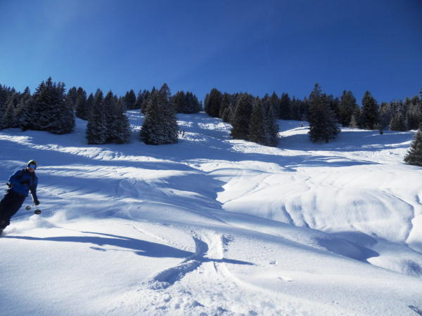 2 - 15 cm Pulver auf dem alten Schnee. Unterhalb von 1600 m Regenrinnen, die unterhalb von 1300 m nicht ganz einfach zu fahren sind. Es wird aber eine Piste geben.