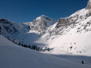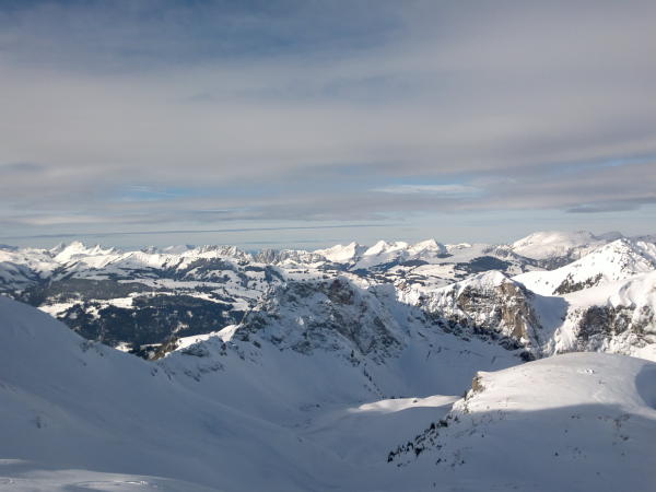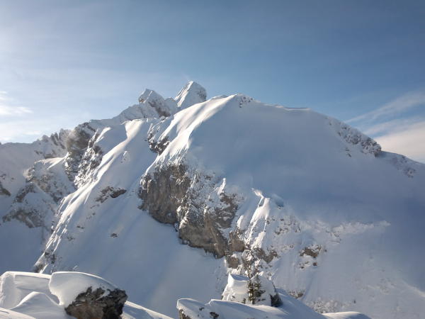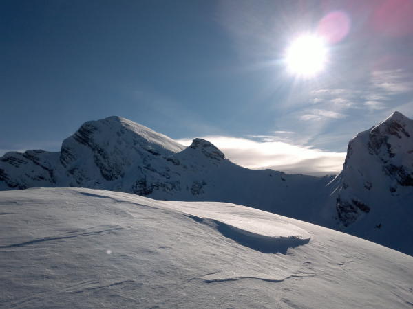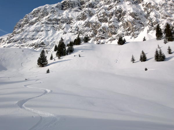Diese Tour ist auch bei Stufe 3 bei guter Routenwahl völlig risikolos. Viele Schneebretter in den Steilwänden von Seehorn und Fromattgrat.