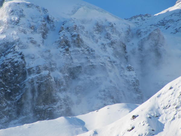 ja - in steileren Hängen Selbstauslösung von Staublawinen
