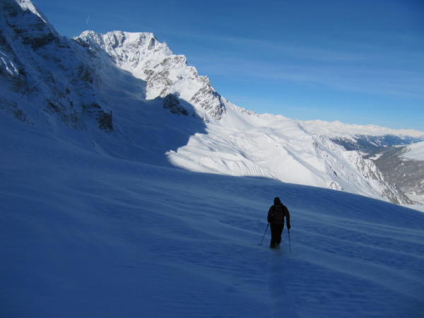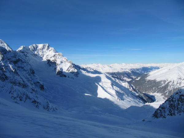 Wir endschieden uns dann die Tour auf einer Höhe von 3130m auf Grund von starker Schneeverfrachtung und zu hoher Lawienengefahr abzubrechen. (man ist ja in Italien und da kennt ja jeder das Problem mit Lawinen Auslösung !)