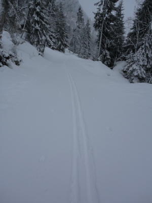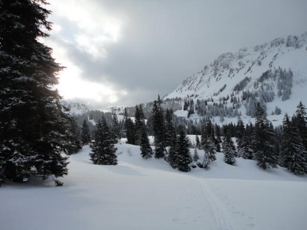 Musste sogar bei Parkplatz beim Seebergsee bei der Verbotstafel etwas nach rechts ausweichen da mir der linke Hang mit sehr viel Triebschnee gefühlt war