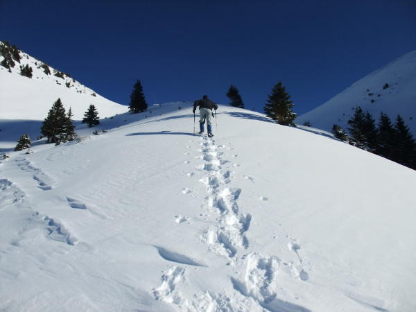 Unten knapp aber ausreichend Schnee. Auf der breiten Rippe Richtung Grenchenalm ein bischen hart aber OK. Gipfelhang ebenso. Abfahrt super. Pulver auf harter Unterlage.