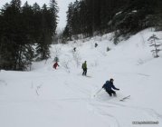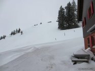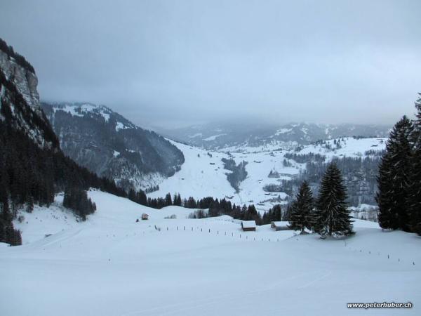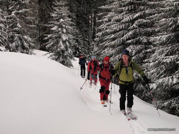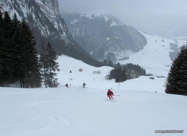 Genügend Schnee. Ab dem Start ca. 10 cm frischer Pulverschnee auf guter Unterlage. Oberhalb ca. 1'400 m ist der Neuschnee stark verweht. Dennoch stellenweise auch oben erstaunlich gut zum Abfahren. Insgesamt tolle Verhältnisse!